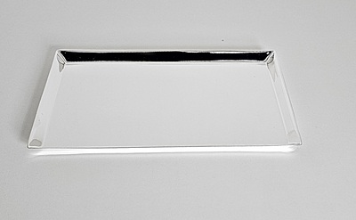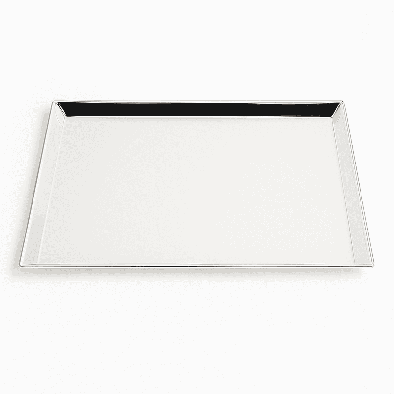 Features a refined silver-plated finish with raised edges for polished presentation
