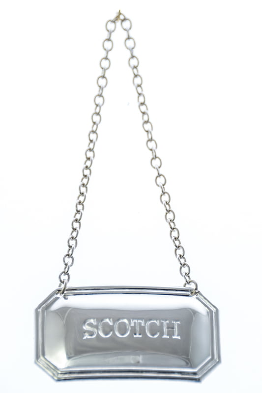 Decanter Label Cut Corner Silver Plate Scotch. SKU #: C1260SCOTCH.
