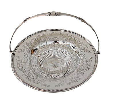Basket Large Engraved & Pierced English Silver Plate c.1865.
