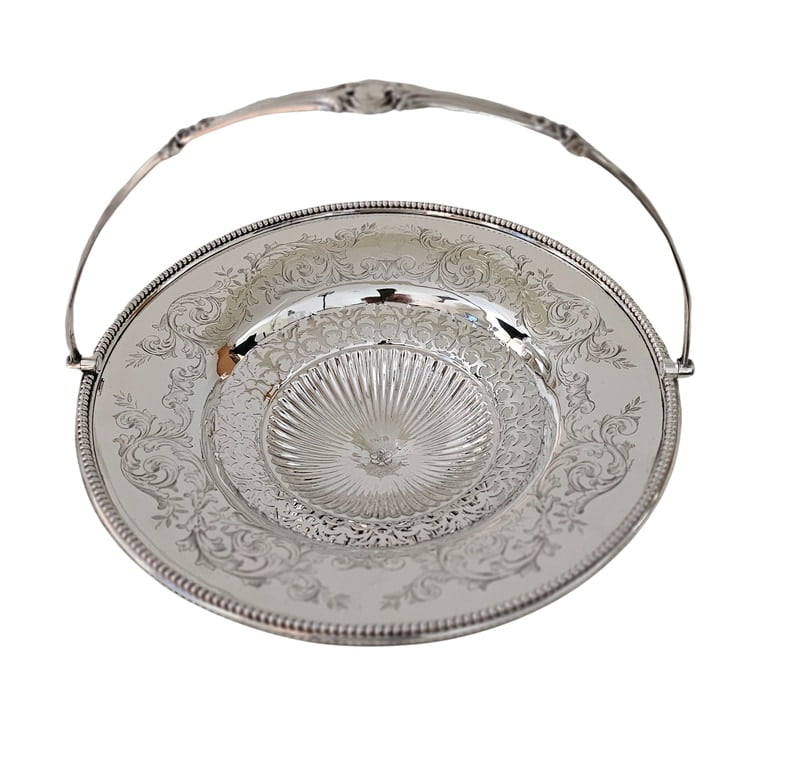 Basket Large Engraved & Pierced English Silver Plate c.1865.SKU:ANT4040