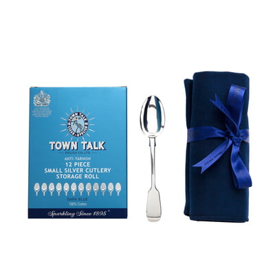 With an individual pocket for each item, this storage roll will keep up to 12 small items of silver cutlery sparkling bright and safe from knocks and scratches. It’s made from special anti-tarnish fabric, which will retain its protective properties as long as it is not washed.