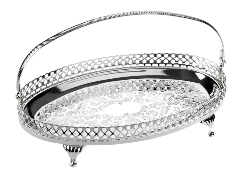 Small Oval Tray/Legs/Handle 5 1/2"h x 5 3/4"w x 9"l English Silver Plate (Tarnish Resistant) |
