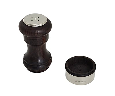 These elegant salt and pepper shakers are crafted from English sterling silver and polished wood, combining functionality with timeless design. The bases unscrew for easy filling, ensuring convenience without compromising on style. The sterling silver tops add a touch of sophistication, while the wooden bodies provide a warm, classic look. Perfect for any dining table, these shakers are a beautiful addition to your collection. These make the perfect gift