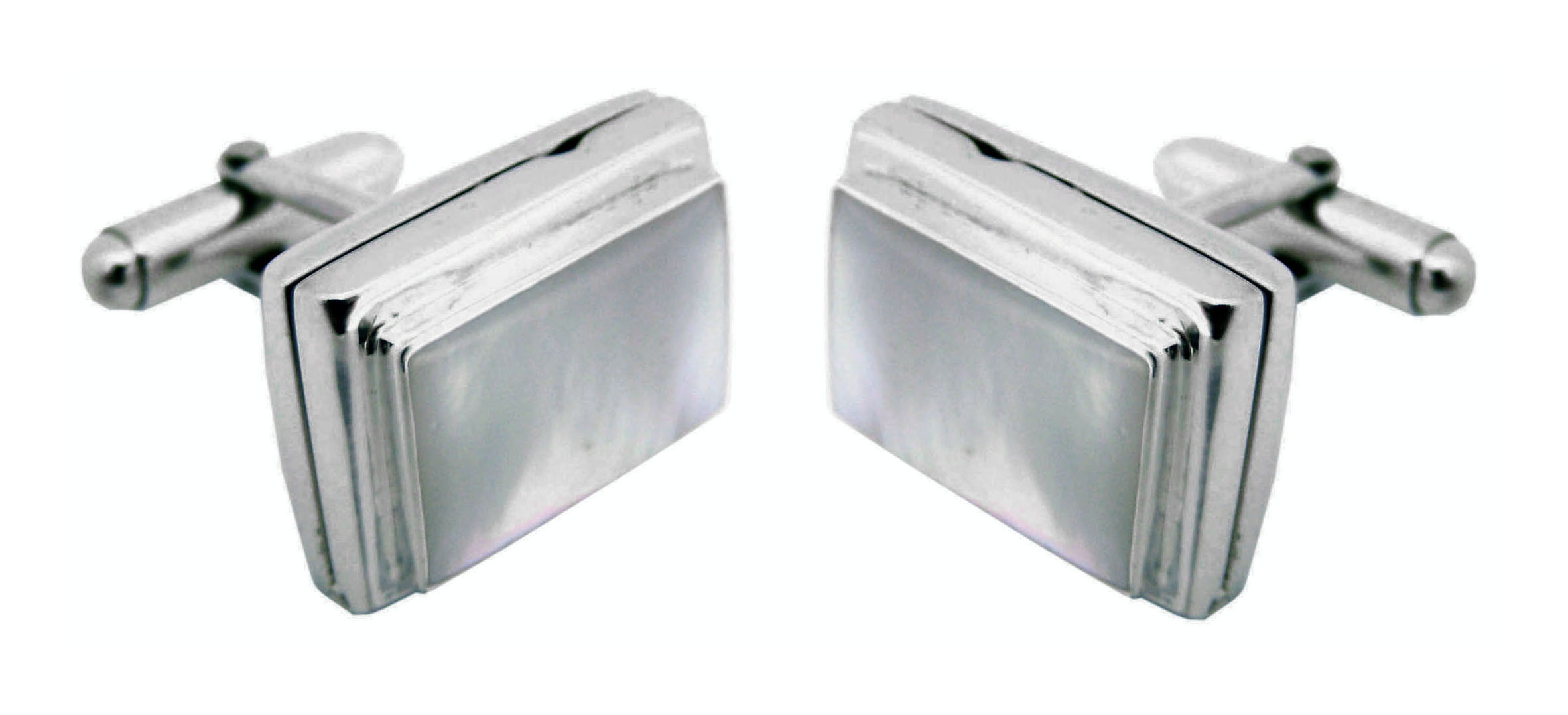 Cufflinks Mother of Pearl Rectangular Locket/Photo Frames Open and Holds Two Photos English Ster.... SKU #: CU467.