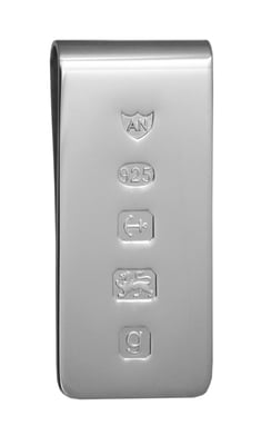 Feature Hallmark Money Clip English Sterling Silver 2" x 3/4". SKU #: GT117.