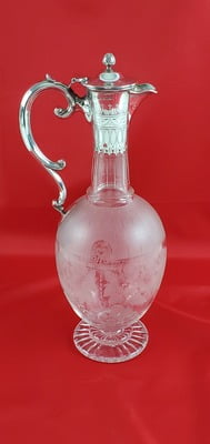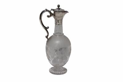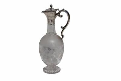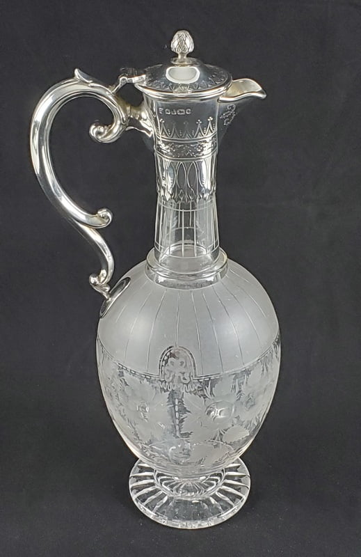 English Sterling/Etched Claret Jug Sheffield 1868. SKU #: A6581.