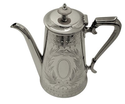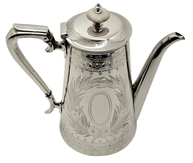 Round Engraved Coffee Pot English Silver Plate c.1860. SKU #: A1672.