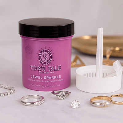 For delicate gemstones, such as emeralds, opals or pearls, try Town Talk’s Pearl Spray, and for Fashion Jewellery, Town Talk’s Jewellery Spray – they’ll work wonders!How to useJewel Sparkle 225ml - Place your jewellery into the cleaning fluid & remove after 2 minutes. Use the brush provided to gently clean behind the settings and remove embedded dirt, then dry with a soft, clean cloth. Jewel Sparkle Refill 50ml -