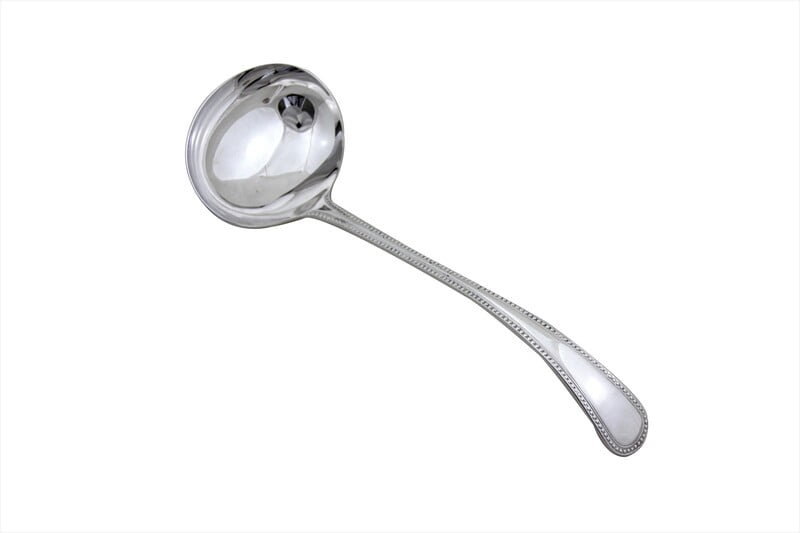 Bead Edge 7.5" Sauce Ladle English Silver Plate. SKU #: KM9660.