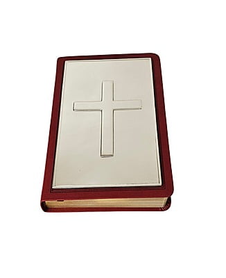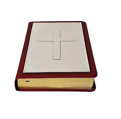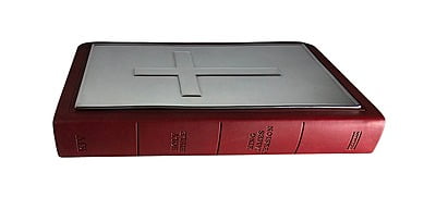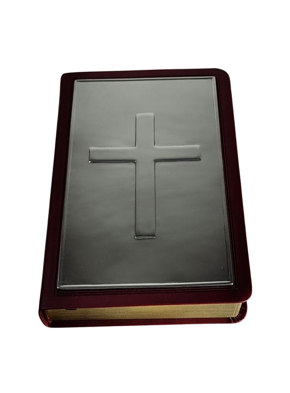 The KJV Deluxe Leather Touch BURGUNDY Bible with Full Size Engravable Pewter Plate With Cross is a beautiful and durable Bible that is perfect for personal use or as a gift. The Bible is bound in black leather with a touch of leather that gives it a soft and comfortable feel. The Bible features a full-size pewter plate that can be engraved with a name or message of your choice. The plate is located on the front cover of the Bible and features a cross design that adds a touch of elegance to the design.