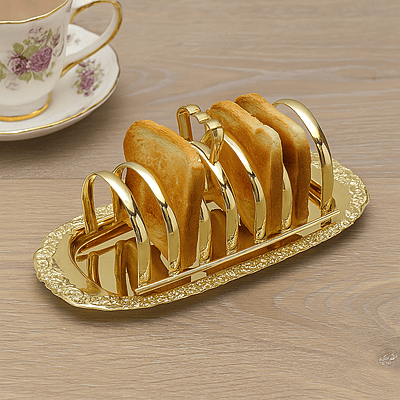 "Elegance Meets Functionality: Our Silver Plated (Gold Finish)Toast Rack with Handle