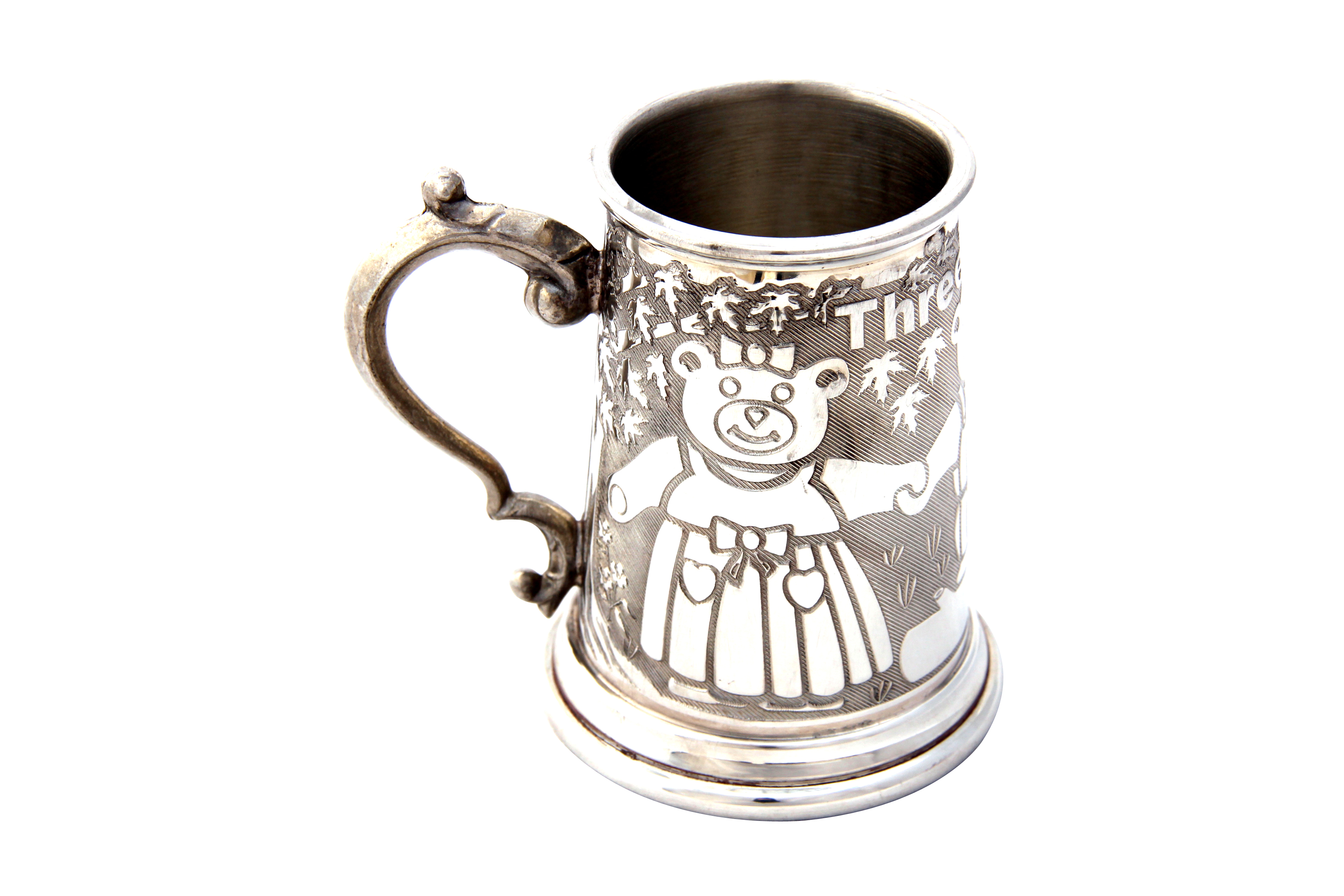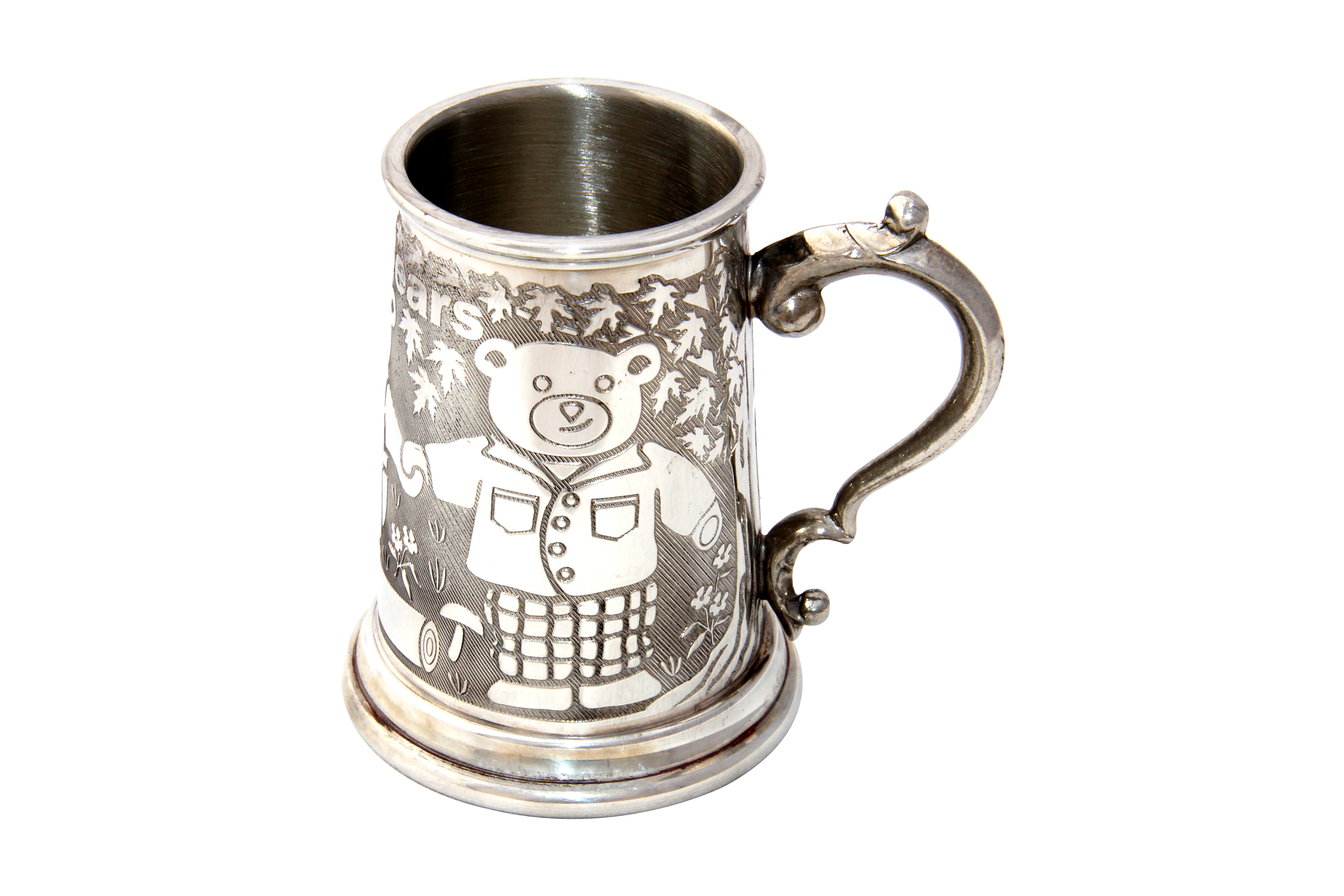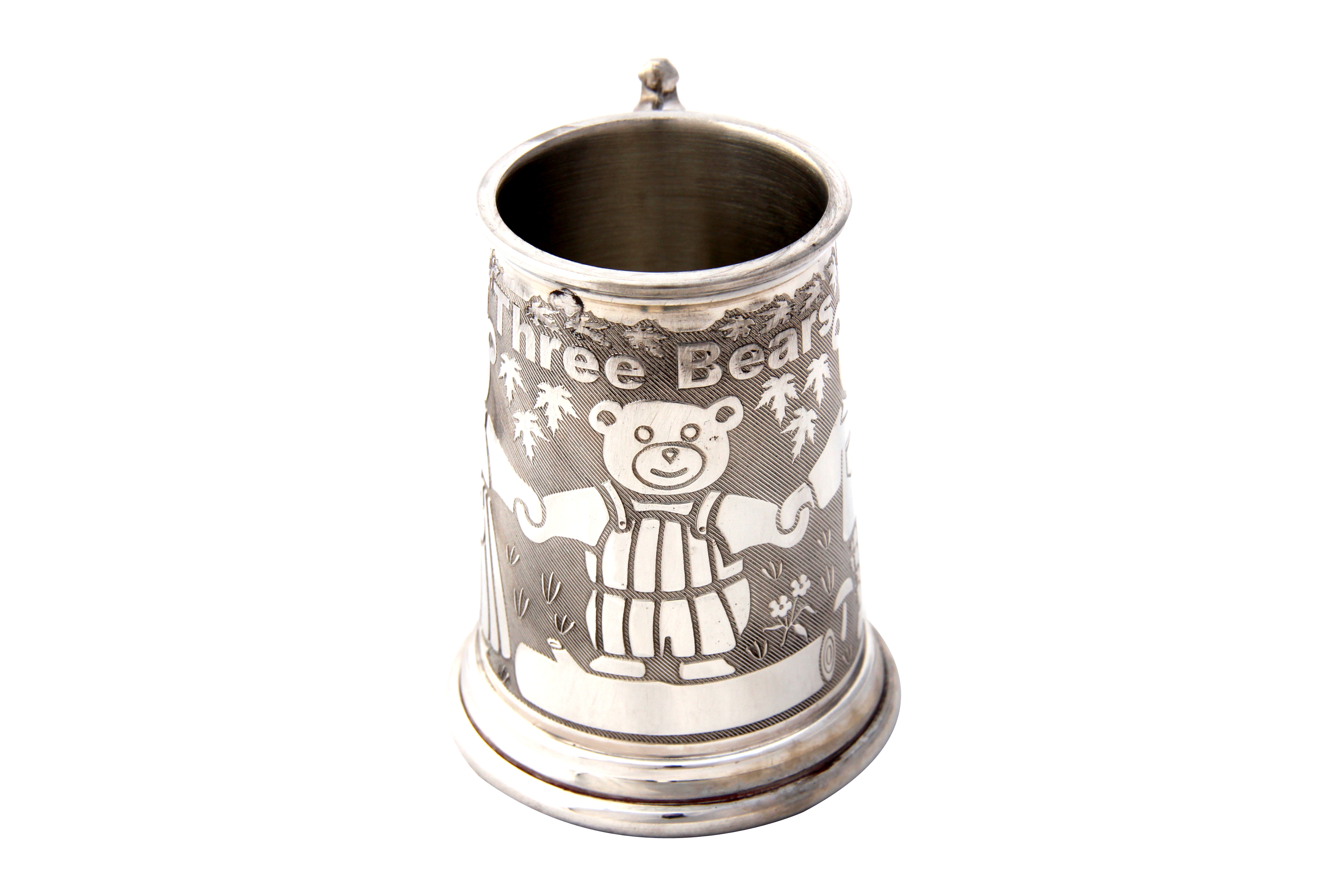 Classic Rolled Three Bears Children's Can with Georgian Handle, English Pewter. SKU #: EB98001.