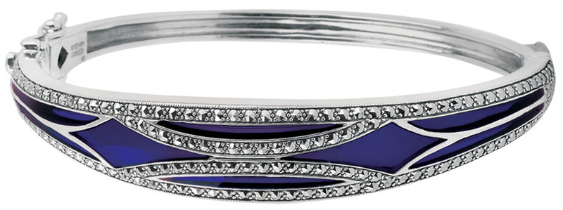 Bangle Blue Enamel & Marcasite Set Hinged Bangle English Sterling Silver 2 5/8". SKU #: BE418.