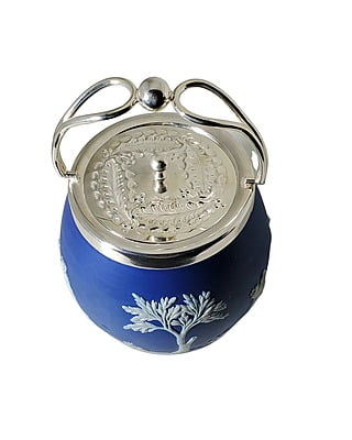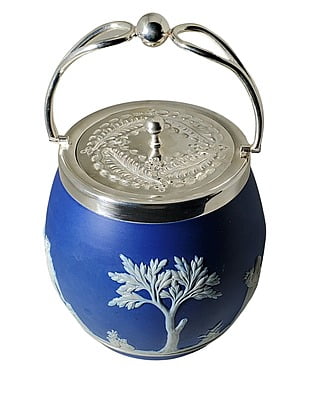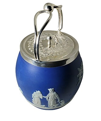 Wedgewood Biscuit Barrel English Silver Plate / Jasperware c.1880. SKU #: ANT2458.