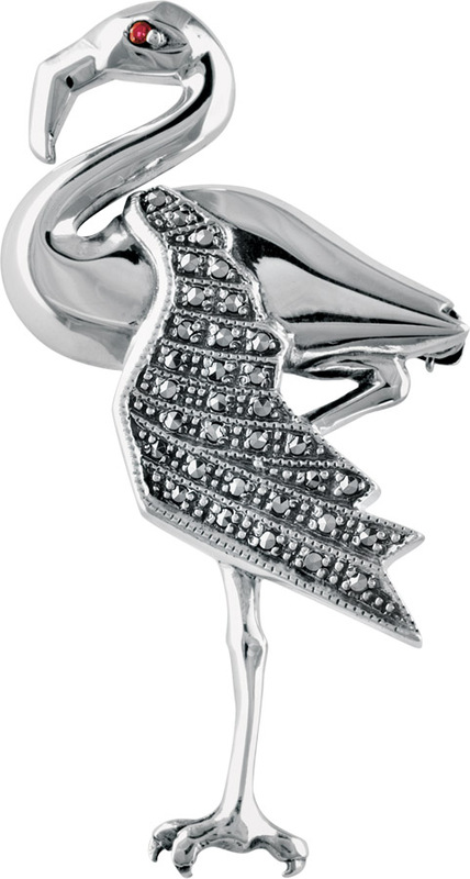 Brooch Flamingo Marcasite and Red Crystal English Sterling Silver 2 3/8" x 1 1/4". SKU #: B332.