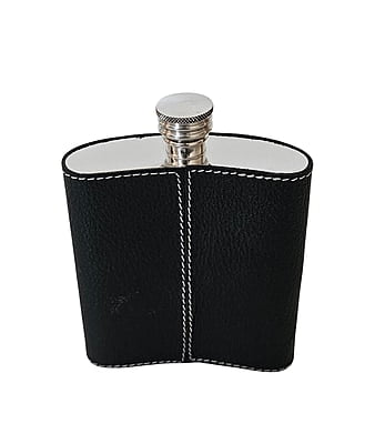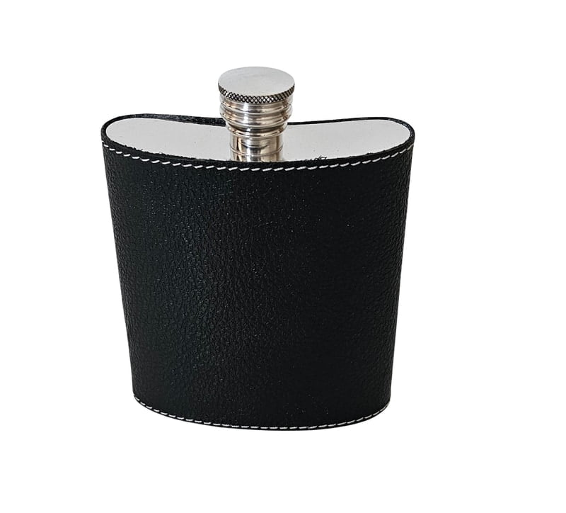 Pewter / Black Leather Stiched Flask 5oz With Pouch & Presentation Box.