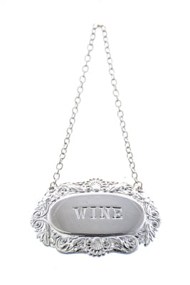 Label your favorite libation with a lustrous silver plated decanter label. Each label is hand engraved with a variety of liquors. Including a chain to go around the neck of the decanter, this collection will make serving guests their favorite cocktail easy. The labels measures 1 1/4 inches in length by 2 inches in width.