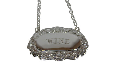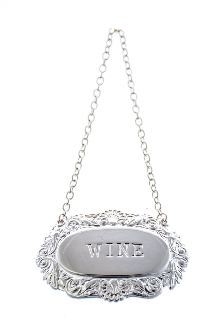 Decanter label-WINE, Shell & Scroll, Silver Plate. SKU #: C503WINE.