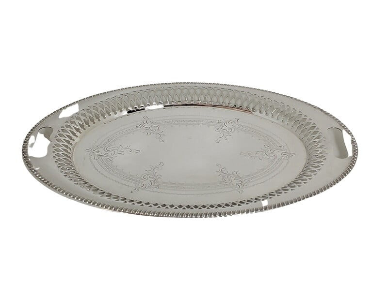Oval pierced Engraved Tray English Silver Plate c.1885