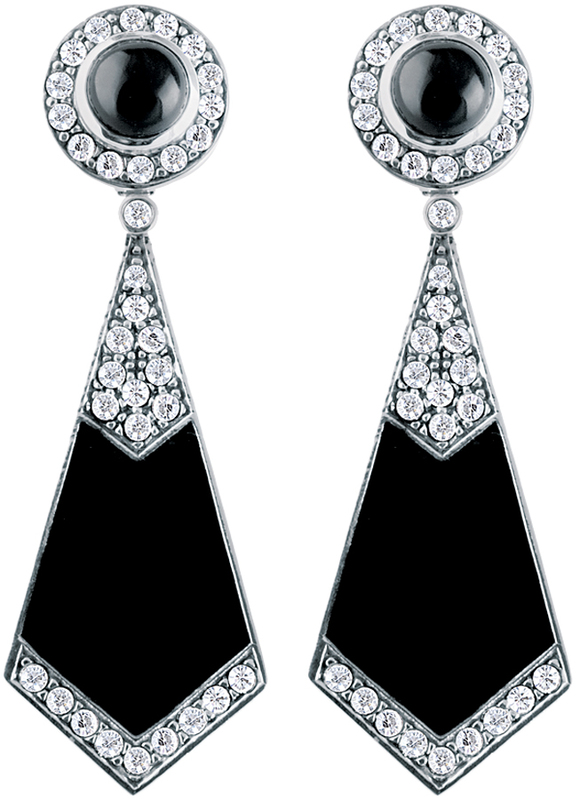 Earrings Crystal & Onyx Set Black Enamel Art Deco Post Drop Earrings English Sterling Silver 1 7/8"