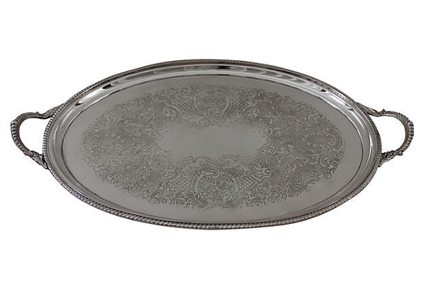 English Oval Engraved Tray, C. 1930 SEND TO UK. SKU #: ANT1190.