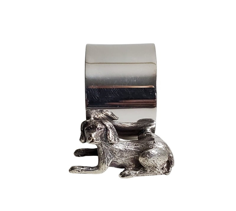 Figural Vintage Napkin Ring English Silver Plate Dog