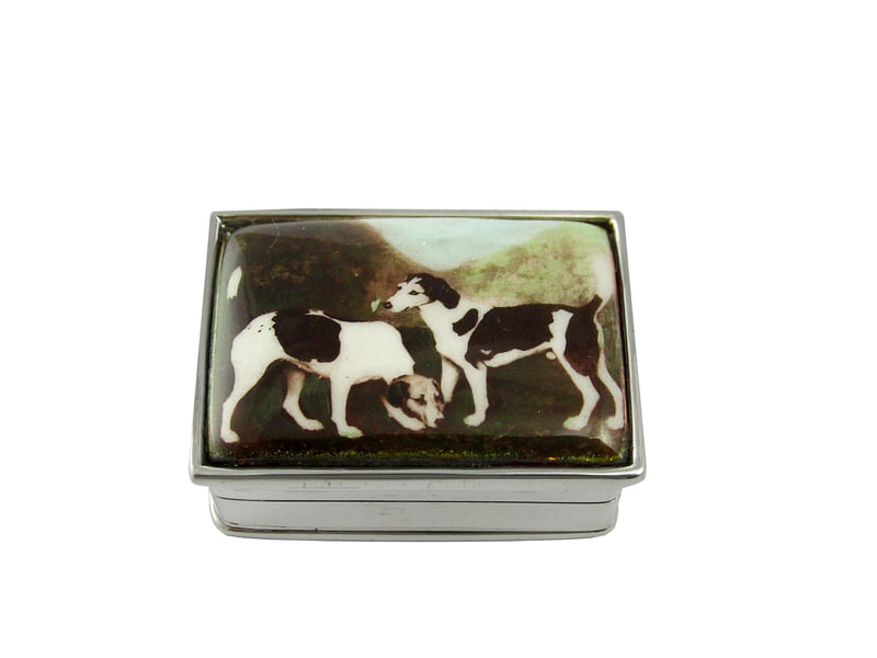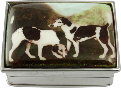 Pillbox Two Dogs Cameo Design 1" W X 1 1/2"L English Sterling Silver