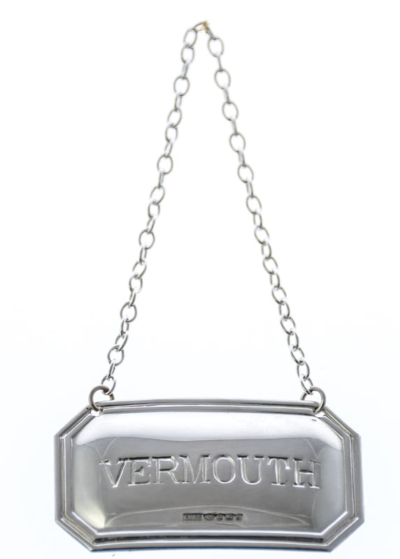 VERMOUTH Cut Corner Hallmarked Silver Decanter Label..