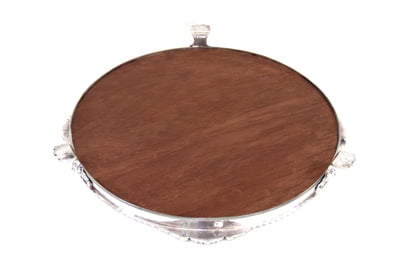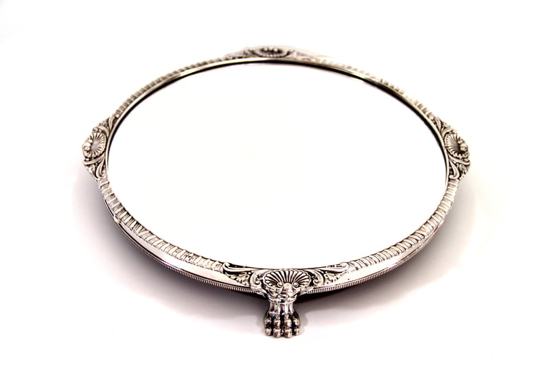 mirror plateau Silver Plate shell & Gadroon round with claw feet. SKU #: C1908.