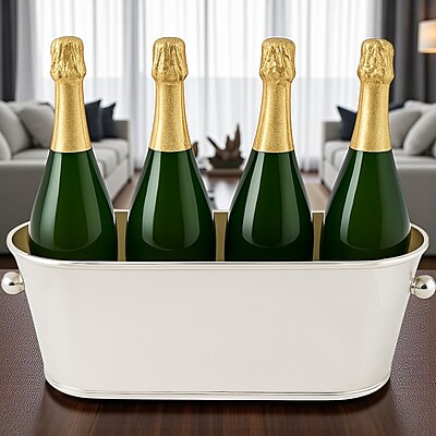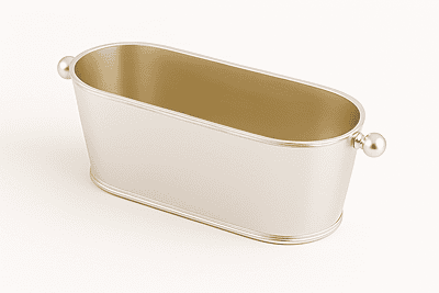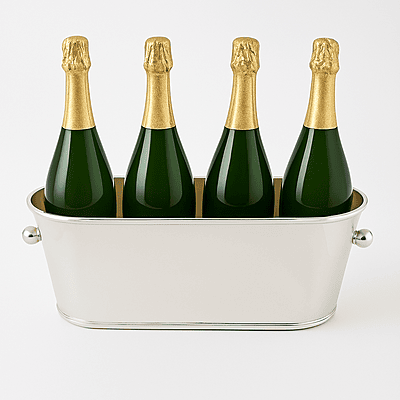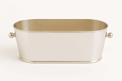 “Welcome to Corbell Silver, the home of exquisite hospitality accessories. Our highlight product is the ‘Hotel Silver English 4 Bottle Ice Bucket’. With dimensions of 18.5” long, 6" wide, and 8" high, this ice bucket is not only functional but also a statement piece. Crafted with precision, it can comfortably hold four bottles, making it an ideal choice for hotels, restaurants, or even for personal use at home. Its elegant design and silver finish add a touch of sophistication to any setting. Explore our collection and bring luxury to your space."