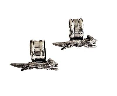 PAIR Figural Napkin Ring English Silver Plate c.1895 FOX (6 AVAILABLE. SKU #: ANT2466.
