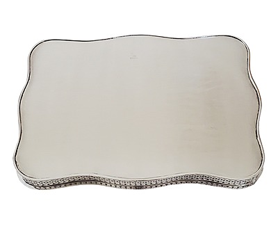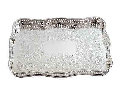 Gallery Tray 14" x 10" Shaped Pierced Leaf Design English Silver Plate c.1900. SKU #: ANT2230.