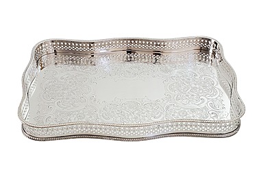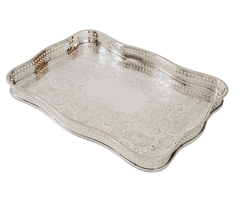 Gallery Tray 14" x 10" Shaped Pierced Leaf Design English Silver Plate c.1900