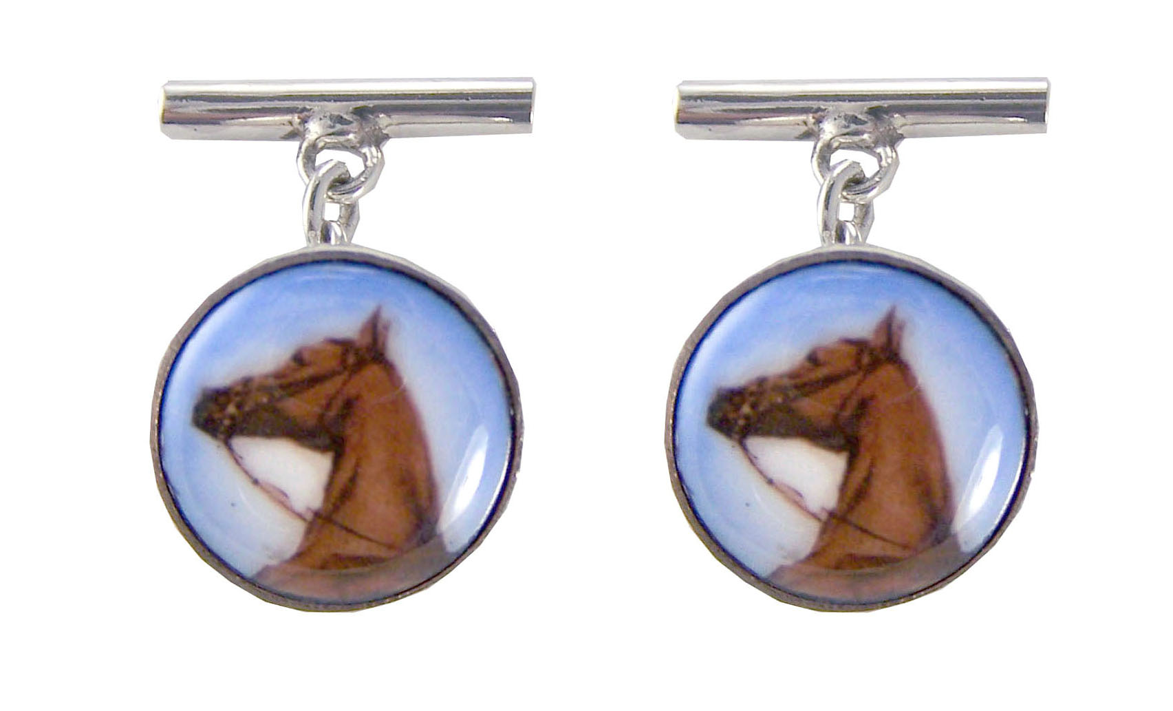 CU458 Sterling Silver Enamel Horse Cufflinks