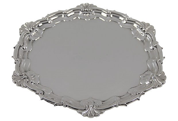 Shell Border 10" Footed Salver English Silver Plate c.1900
