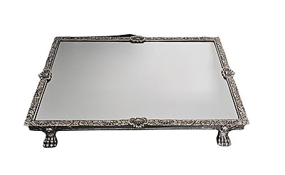 - Three-Section Plateau: Measuring 53" in total length, the plateau includes a central mirror section (19" x 16") and two side sections (17" long x 16" wide each). The sections are supported by large claw feet, and the underside is crafted from wood, replicating designs from 1860.