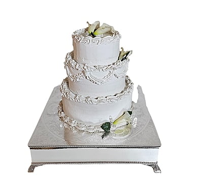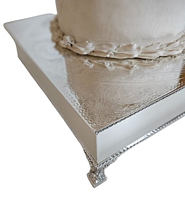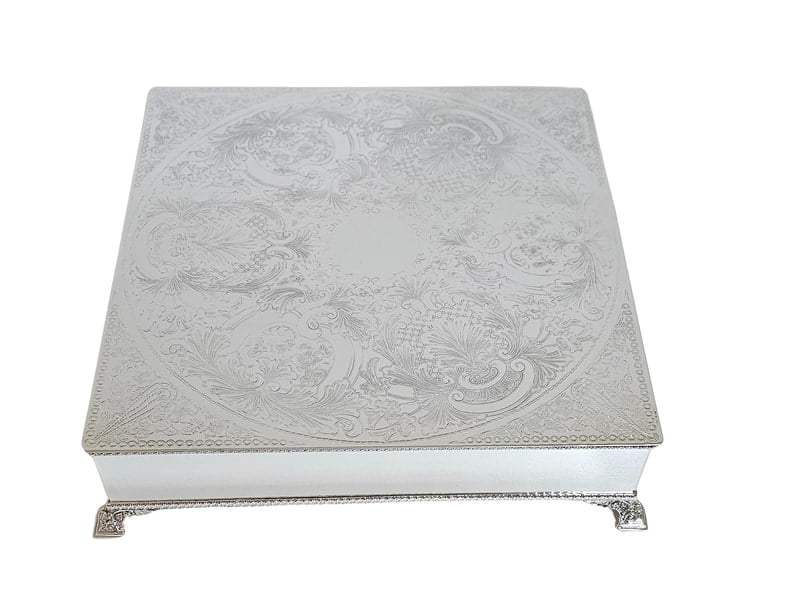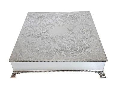 Cake Stand Engraved 16" x 16" x 4" on 4 Feet English Silver Plate.SKU#C3070
