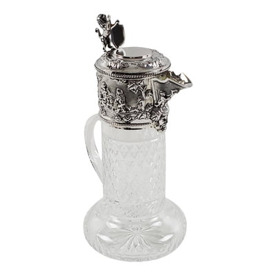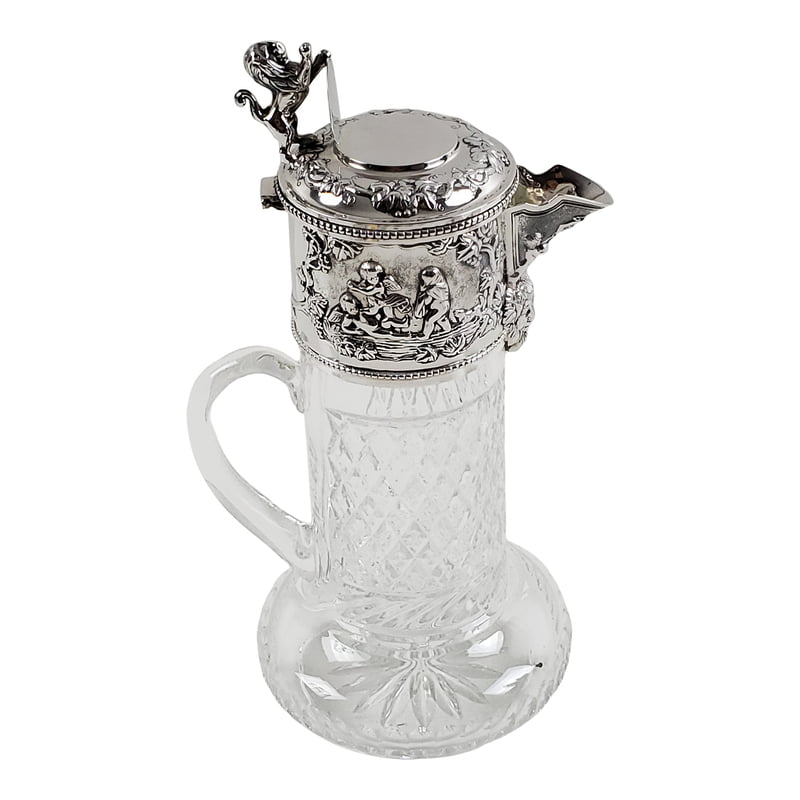 Claret Jug w/Lion on Lid, Cut Crystal 11.5'H/ 32oz. Silver Plate. SKU #: C301.