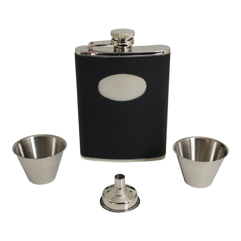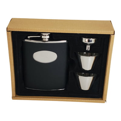 Black Stainless Steel Flask with Funnel & 2 Cups, Boxed 6 oz
